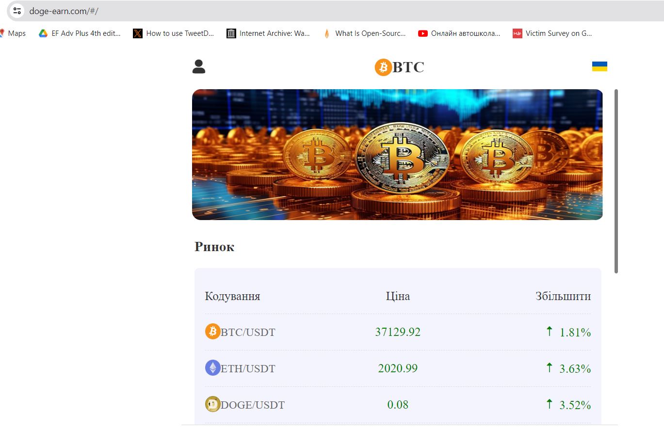 Шахрайський сайт з заробітку на криптовалюті та інвестуванні